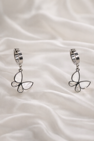 Elegant silver butterfly drop earrings with crystal accents. Lightweight anti-tarnish fashion jewellery perfect for daily wear, gifting and party styling.